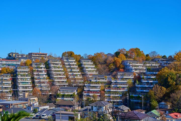 斜面に建つゆりが丘ヴィレッジ(神奈川県川崎市)