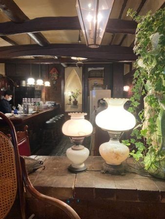 友人と2人、少し薄暗い店内へ。アールヌーボーのランプや、年代を感じさせるアンテイーク家具などが置かれレトロな雰囲気です。昭和世代にとっては、このレトロな空間が案外ホッとします・・。