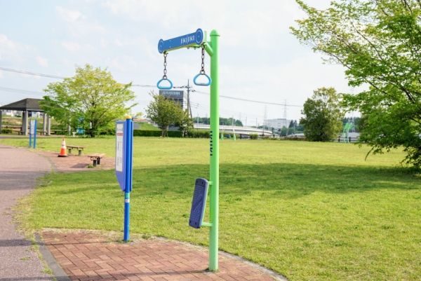 大人の健康器具や芝生広場もあって、日頃の運動不足の解消にちょうど良さげ。