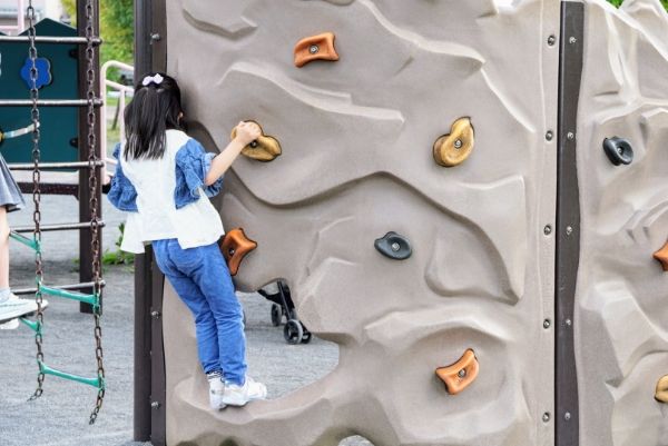 まずは、ロック感強めなボルダリング。岩をリアルに登っている達成感がちょうどいい。登るの大好き娘は今日も高みを目指して山頂へ。