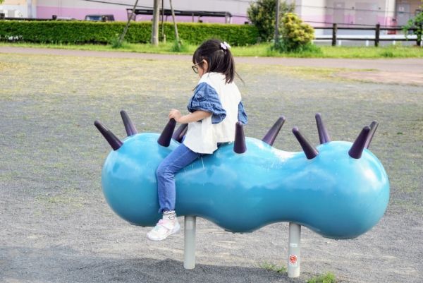 他にもブランコやスプリングが。独特なフォルムと色、刺されたら痛そうな毛虫みたい。