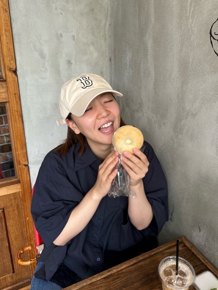 美味しすぎて頬張る顔もベーグルみたいになりました(笑)