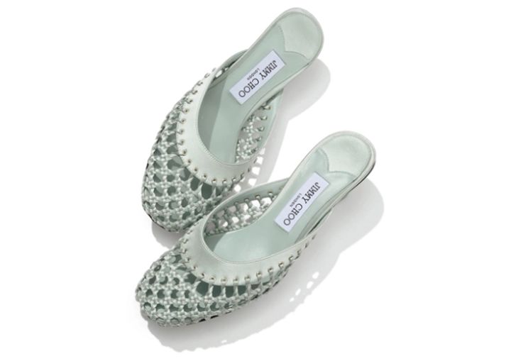 イタリアの熟練の職人が、手編みで仕上げたサテン使いにうっとり。ミュールサンダル「ピクシー」¥157,300[H5]/JIMMY CHOO