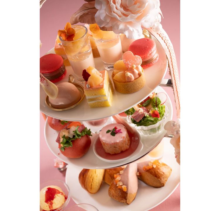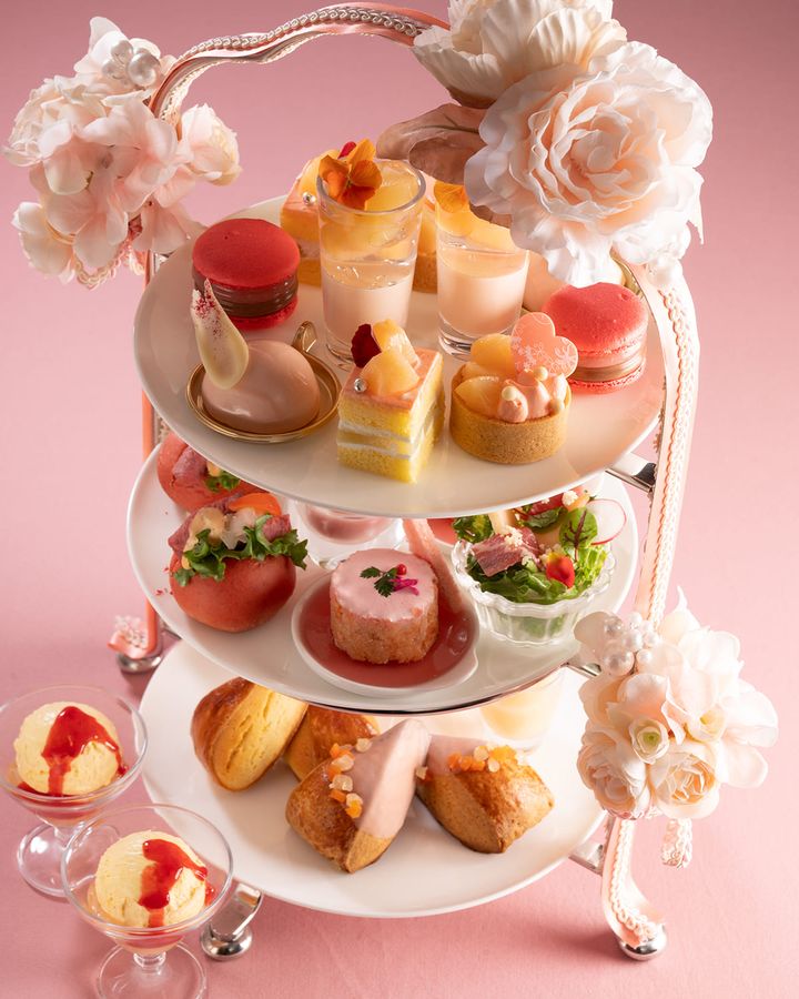 桃が旬を迎えるこの季節、ピンク色に染まった桃のアフタヌーンティーがリーガロイヤルホテル東京「ガーデンラウンジ」に登場!2025年6月1日(日)〜8月31日(日)の期間限定なので、お見逃しなく!