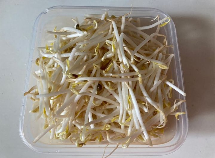 もやし一袋を容器へ入れます。
