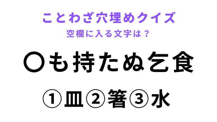 「〇も持たぬ乞食」の空欄に文字を入れると、あることわざが完成します。