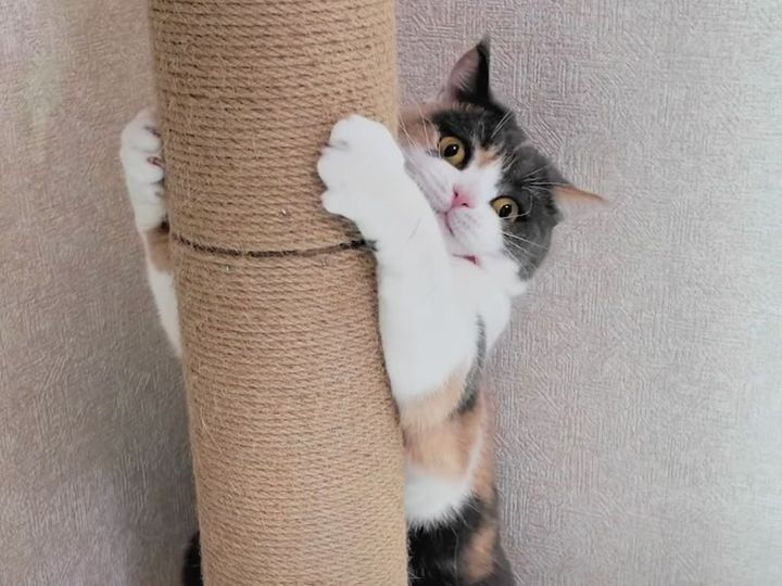 3. キャットタワーのてっぺん目指して! 三毛猫さんの奮闘記