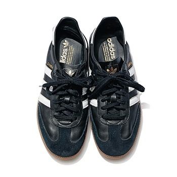 「モノトーンは1足必須。アディダス オリジナルズのサッカーシューズのようなデザインの1足は、黒にも白ボトムにもぴったり似合う。白のラインもアクセントに」(樋口さん)