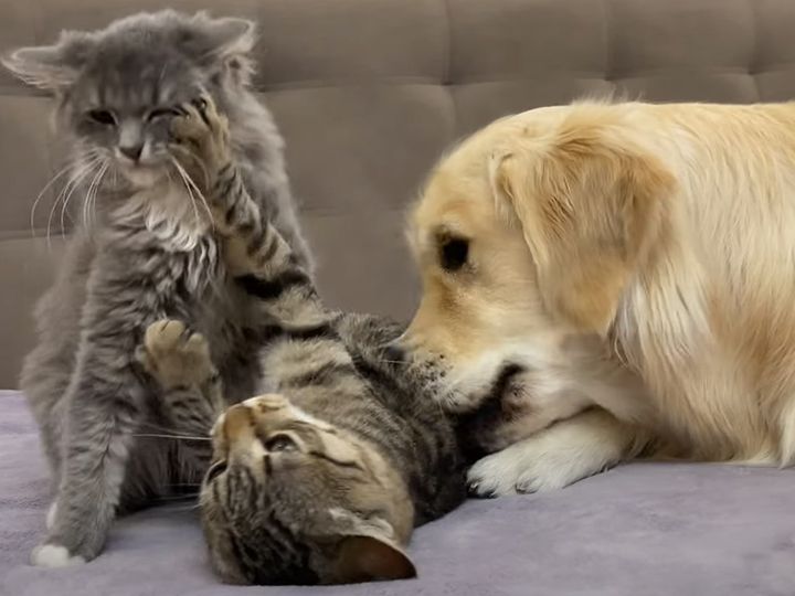 3. まるでお兄ちゃんのように子猫を見守る優しい犬さん