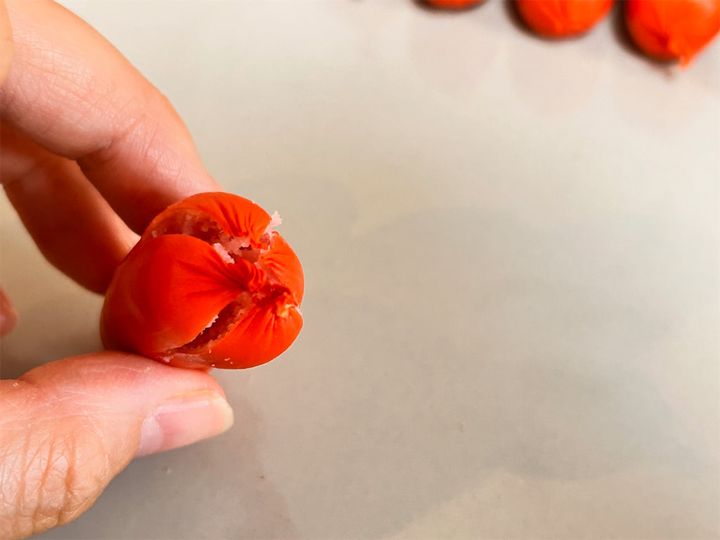 では、キッチンばさみを使ってタコの足を作っていきますよ~!