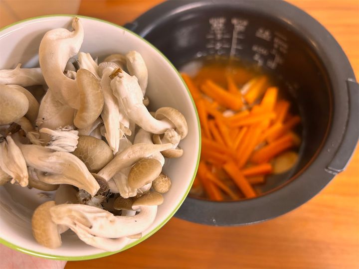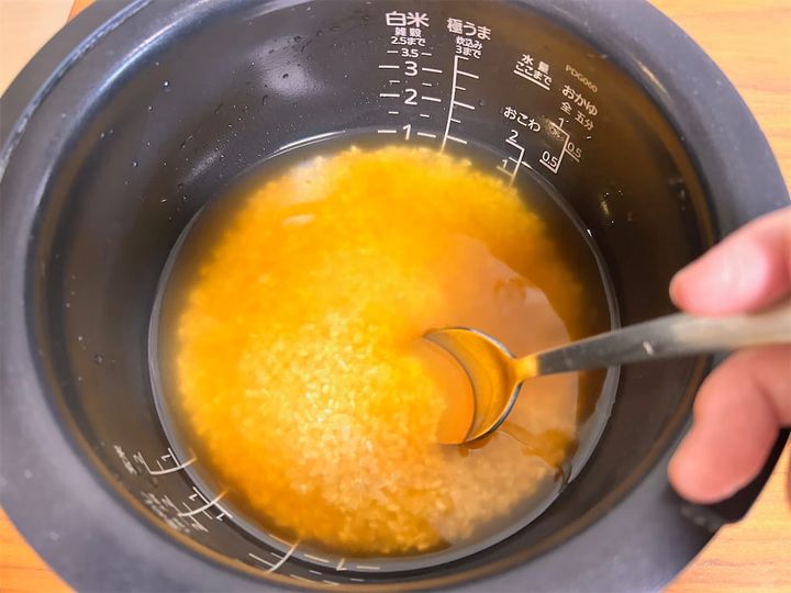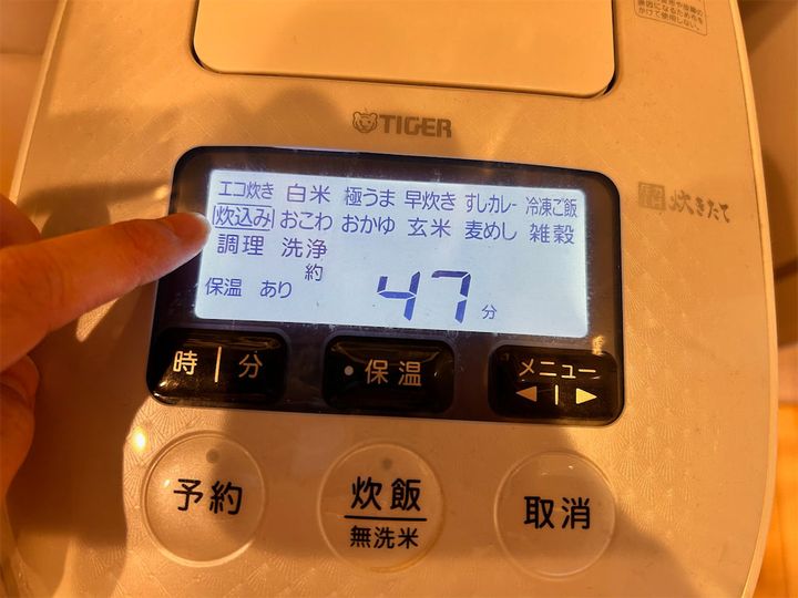 炊飯器を「炊き込み」モードに設定して、炊き上がりを待ちます。