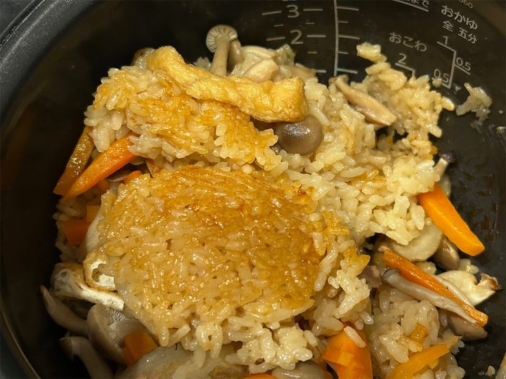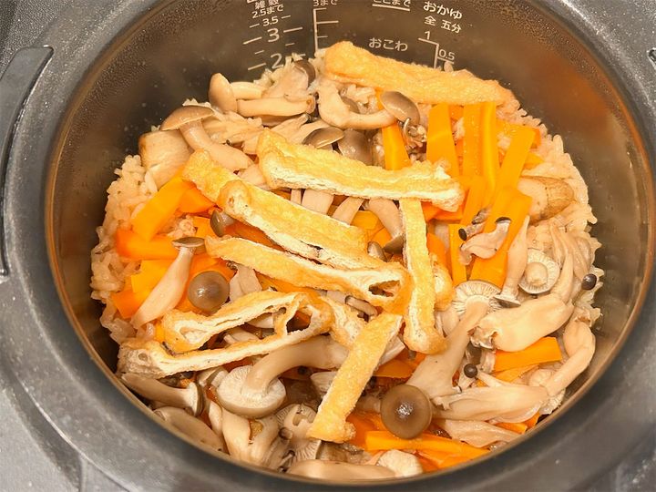そしてこの炊き込みご飯、めちゃくちゃおいしい!きのこやツナが、味わい深さを出してくれています。にんじんやごぼうも柔らかい。油あげにも味が染みていますね。これからもわが家の定番にしたいです!