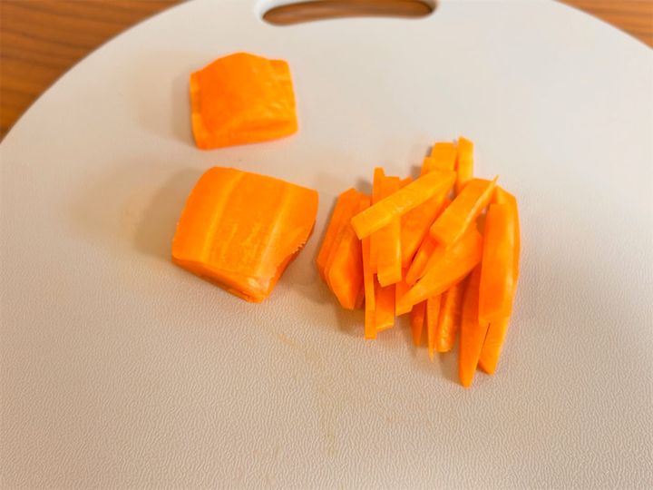 1.にんじんはへたを落として皮を剥き、細切りにします。