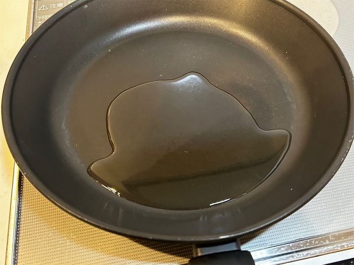 というわけで、フライパンにサラダ油を大さじ3ほど入れてみました。