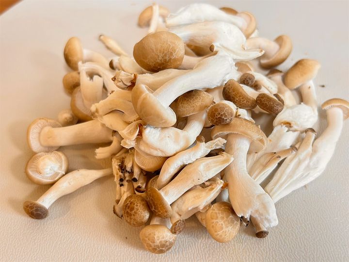 しめじは石づきを落とし、食べやすい大きさに手でほぐします。
