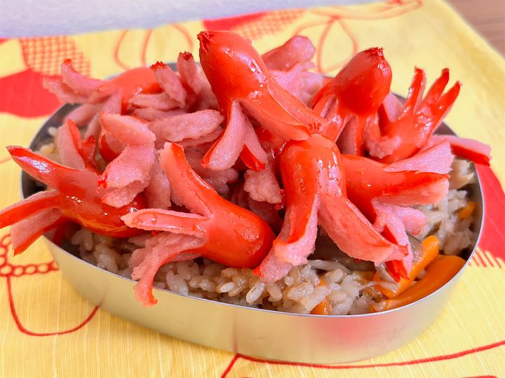 3. 【ご飯の上はタコさんてんこ盛り】雑!?嫌がらせ!?「おかずはタコさんだけ弁当」が…旨いご飯で納得した話