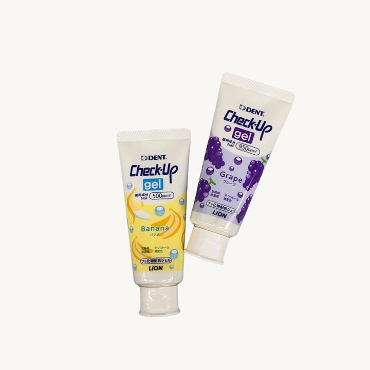 虫歯予防にはフッ素が有効です。チェックアップのソフトジェルなら濃度が選びやすいんです。1日2回、フッ素ジェルを付けて歯磨きをしてあげてください。量は爪先程で歯ブラシの先にちょんと付けるだけで十分です。虫歯になりやすいところから磨くといいでしょう。口をゆすぐのが難しい小さなお子さんでも、子ども用フッ素ジェルは付けたまま寝て大丈夫なので安心です。