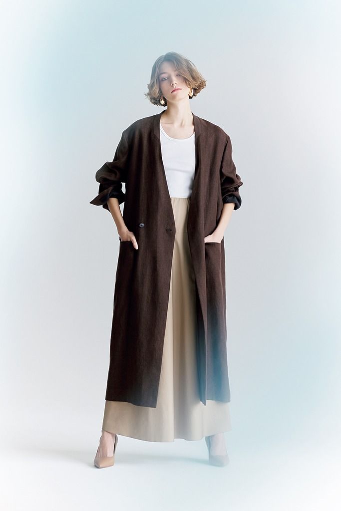 ベーシックカラーどうしでシンプルだけど上品、かつ華のある。そんな装いのキーカラーは「ブラウン・ベージュ」。コンパクトな白をつなぎ役に起用した3色でコーディネートすれば、ゆったりとした服どうしの組み合わせもルーズではなくエレガント。外側を一番濃い色にすることで、全体が引き締まるから、まろやかなカラーリングがぼやけない。