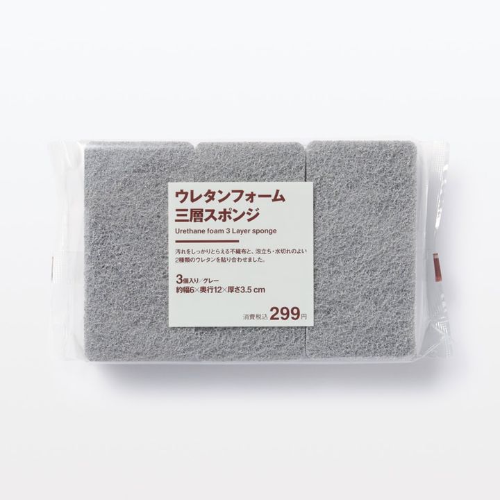 ウレタンフォーム三層スポンジ/グレー 3個入¥299(無印良品)