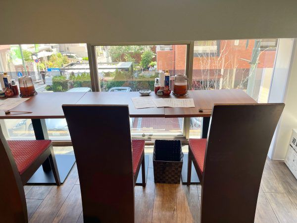 お店に入ると、とんかつ屋さんとは思えないおしゃれな雰囲気。なんと、土地柄、ペット同伴OKなんだとか(現状、小型動物のみ)! 1人でも入りやすいカウンター席もありました。