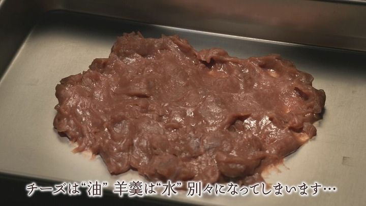 職人:「チーズは“油”羊羹は“水”別々になってしまいます…」