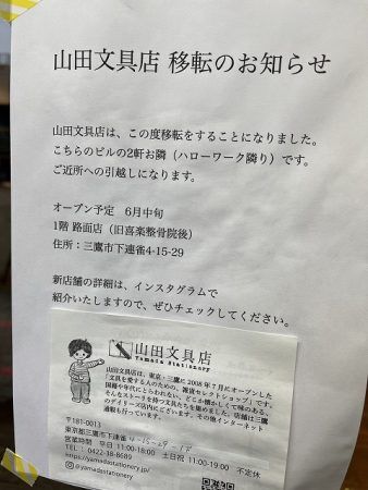【移転OPEN】6月中旬予定『山田文具店』元の場所から僅か40mの路面店へ@三鷹
