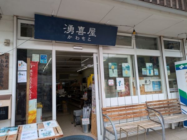 この街に流れる音信川(おとずれがわ)を挟んで「恩湯」のほぼお向かいにある「湧喜屋(わきや)かわもと」というお店です。
