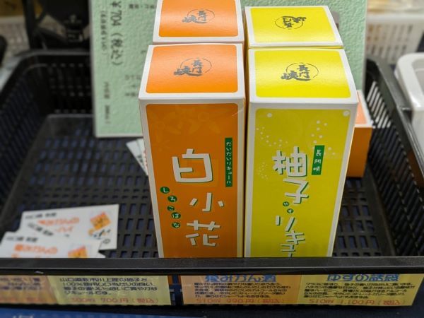 みかんや柚子、橙などの柑橘類の栽培も盛んな山口県らしいお酒もありますよ。夏みかん特有の爽やかさとほろ苦さを楽しめる「夏みかん酒」(左)、「ゆずの誘惑」(右)は、はちみつの甘みと柚子の酸味のハーモニーがたまらないお酒です。どちらも、冷やしてソーダ割りにしたり、凍らせてシャーベットにするのもお勧めだそうです。
