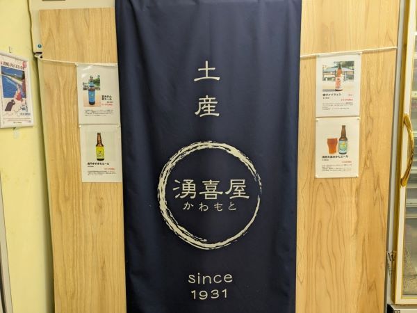 「湧喜屋かわもと」は、1931年創業の老舗酒店!94年の歴史を刻んでいます。「クラフトビールを川床やベンチで是非味わってみてください。」と3代目店主の河本さん。