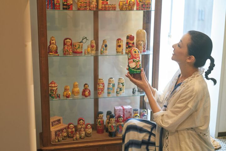 かれんさんが手に取っているのはウクライナのマトリョーシカ。