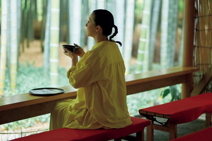 「青々とした竹林の木漏れ日を眺めているだけで癒やされます。茶室で抹茶をいただきながら、初夏の美しい眺めを楽しんで」