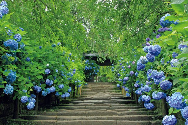 初夏には2500株ものあじさいが咲き誇り、境内がブルーに染まります。「あじさいのシーズンは混雑しますが、やはり1度は訪れたいもの。