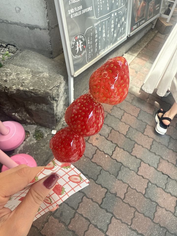 私はフルーツ飴が大好きなので、今回いちご飴を食べました🍓