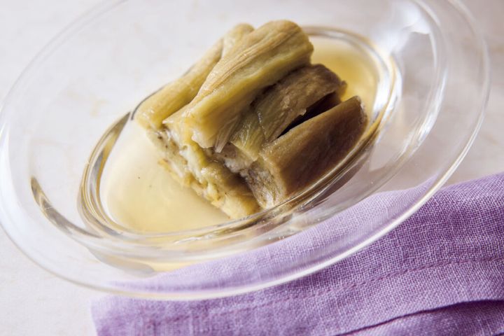 じっくりと火を入れて、そのとろとろの果肉のおいしさを味わって。油、バターとの相性も抜群です。一般的ななすの皮の紫色は、水溶性の色素によるため、煮ものなどにすると他の素材に色がついてしまうことも。白なすの場合はその心配がないので、色移りが気になる料理にも適しています。
