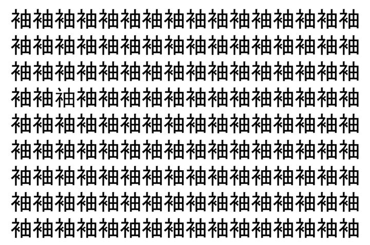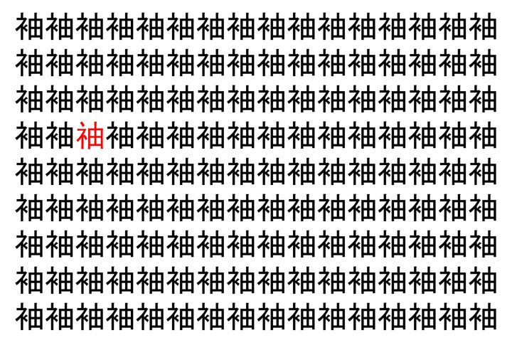 画像の中には、「袖」という漢字が縦に9行、横に16個並んでいます。 全部で144個となりますが・・・、そのうち1つは「異なる漢字」となってますよ!!