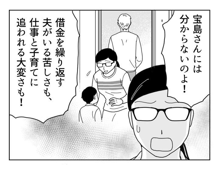 角田さんの心の叫び……伝わる人にはきっと伝わるのでしょう。でもそれを一刀両断する宝島さん、やはり冷静です。角田さんの辛さは、決して不倫を肯定する理由にはならないのです。辛いからって何でもしていいわけではありません。