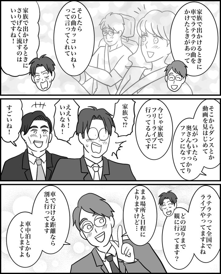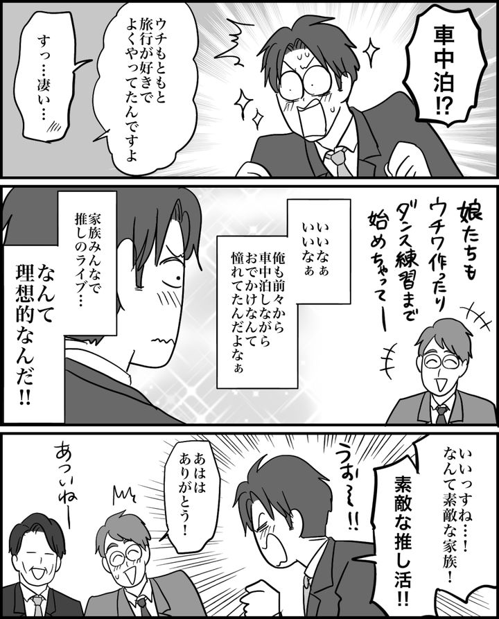 俺も清水さん一家のようになりたい! 妄想は膨らむばかりです。俺は早速ミサトに打ち明け、息子を連れてライブを見に行こうと決意したのでした。