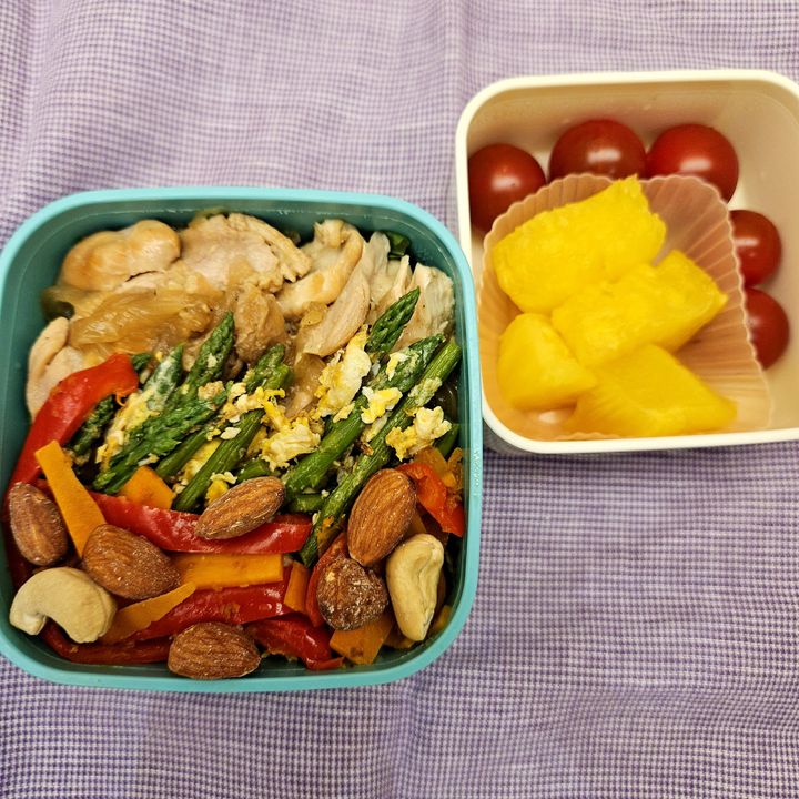 食べ方はその日ごとにまちまちですが、アーモンドを何らかの形で食べます。この日は、野菜をぎっちり詰めて鶏肉のタンパク質も入れ込んだ低カロリー栄養満点お弁当に、7粒トッピング。お肉と一緒に食べると美味しいです。おやつとしてそれだけで食べることもあれば、サラダや和え物に使用したり、砕いてクッキーやパウンドケーキに加えたりもします。無塩の素焼き(遠赤外線ロースト)アーモンドです。カリフォルニア産、U.S.エクストラナンバー1等級の大粒で、気に入っているものをネットで買っています。