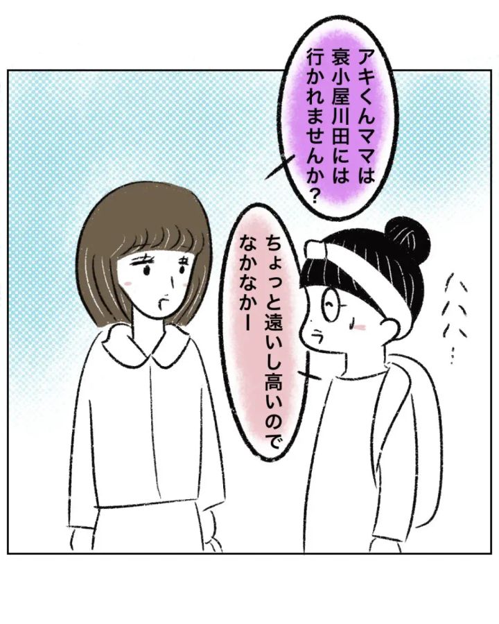 「アキくんママは衰小屋川田には行かれませんか?」と聞かれたまるさんは「ちょっと遠いし高いのでなかなかー」と苦笑いしながら答えました。