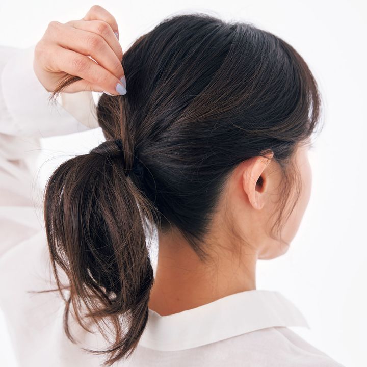 3. 【ヘアゴム1本だけ!】気温や湿度が高いとき助かる「ふんわりまとめ髪」