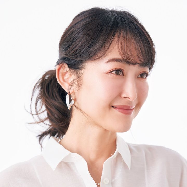 目の位置くらいの高めで結び、顔周りも毛束もふんわりさせるのが決め手