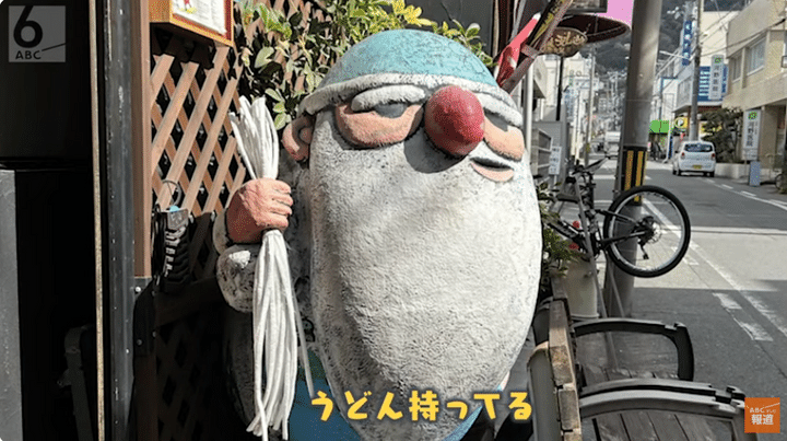 聞き込みを続けていると、地元の人から有力な情報が。これらは「100にんのサンタ」と呼ばれ、店ごとに個性をいかしたサンタが置かれているとのこと。店先にサンタがいるうどん店で話を聞いてみると、サンタの“仕掛け人”の存在が明らかになりました。