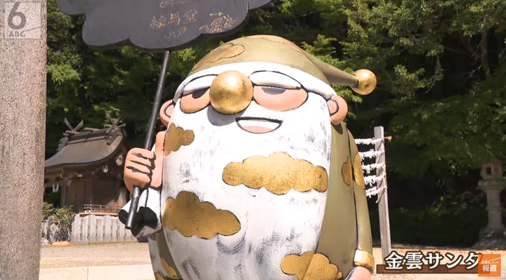 世界各国の住人が暮らすシェアハウスのサンタは、さまざまな国の国旗がにぎやかに描かれた“国旗サンタ”。四條畷神社にあるのは、黄金の雲をまとった“金雲サンタ”。なんと本物の金箔が使われているそうで、なんともいえない神々しさを放っています。