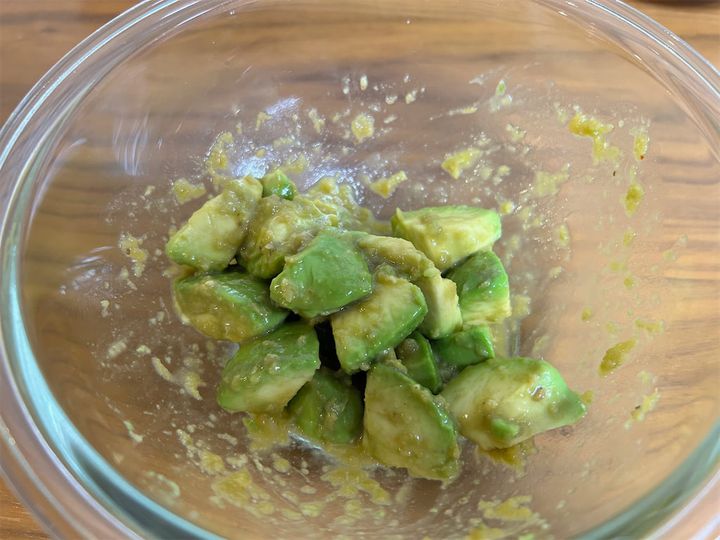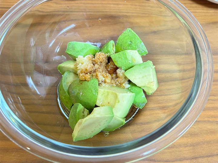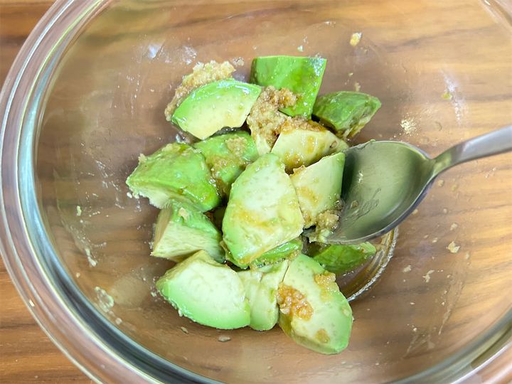 このように、アボカドと調味料がしっかりと混ざり合って、全体にトロッとした感じになればOKです。