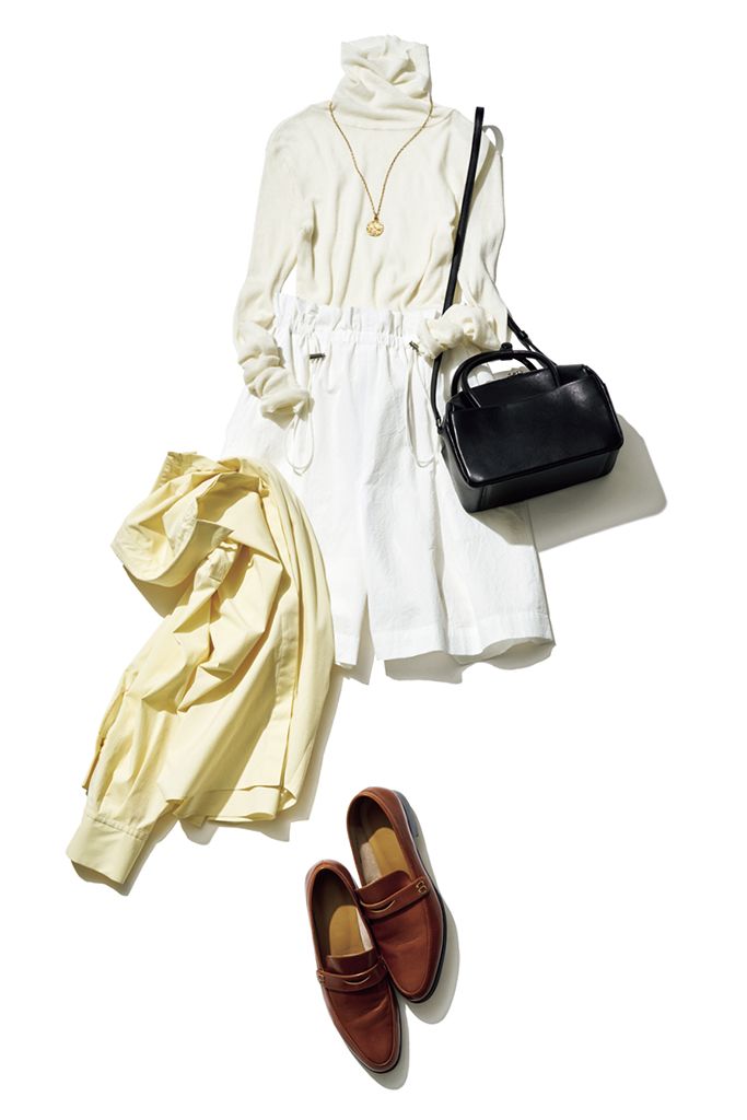 使い道が多く、合わせるものを選ばない「あるといい」新たな定番、黒よりもクリーンで柔和な白タートル。色をいつもと逆転するだけで鮮度が高まるアイテムの選び方をご紹介。