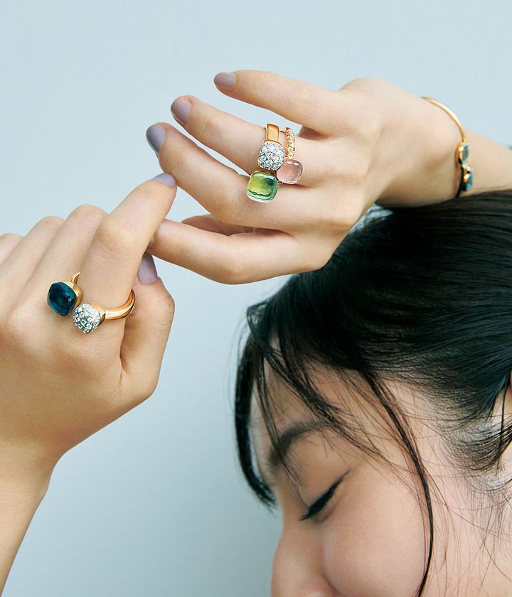 ◯ 重ねづけでこそ魅力が加速。大人の女性の遊び心をカラーコーディネートに託して