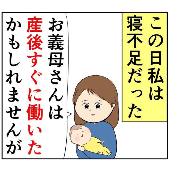 実はこの日、さくらさんはトウマくんの夜泣きで寝不足でした。「お義母さんは産後すぐに働いたかもしれませんが」