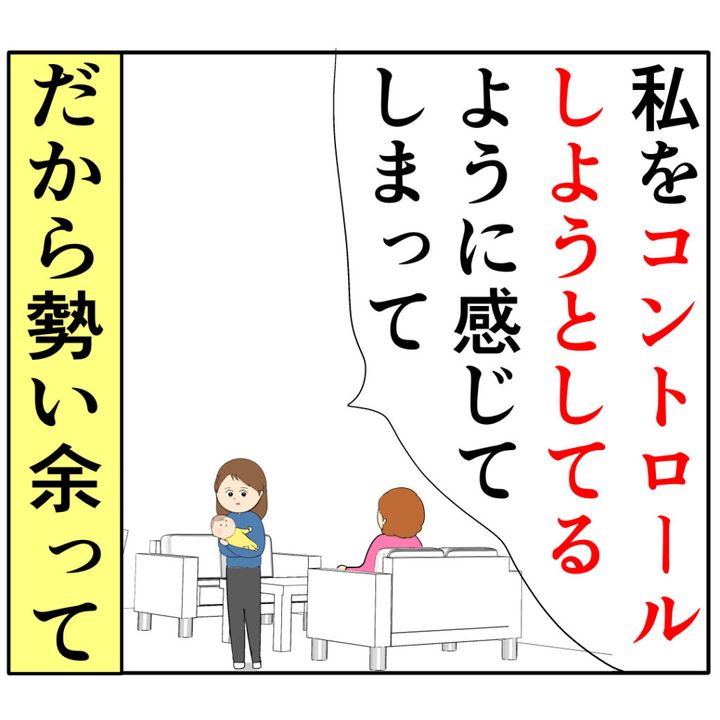 「私とお義母さんは別々の人間です」と反論が止まらなくなってしまったさくらさん。後から思うとこの時は産後でホルモンバランスが乱れていたなとさくらさんは振り返ります。