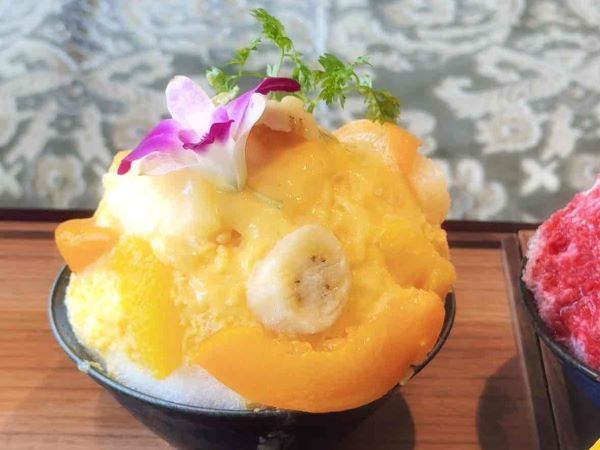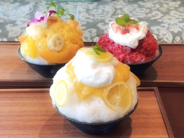 ふわふわ氷に、とろけるクリームや果実のソース。