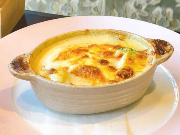 モンシェールは、軽食のメニューも豊富!ふわっふわの厚焼きたまごがおいしい「たまごサンド」もおすすめです。 エビのブロッコリーグラタン (1485円)